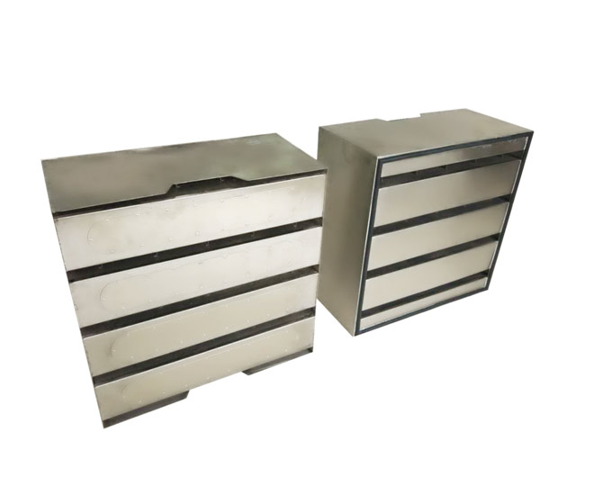 炭層厚度,5 cm;殼體尺寸,610mmX 610mm X 292 mm ;篩板開(kāi)孔率,45 %;接口半圓形密封圈,寬15 mm,厚6mm,外邊長(zhǎng)610mm X 610mm;整機(jī)重量,小于80Kg。